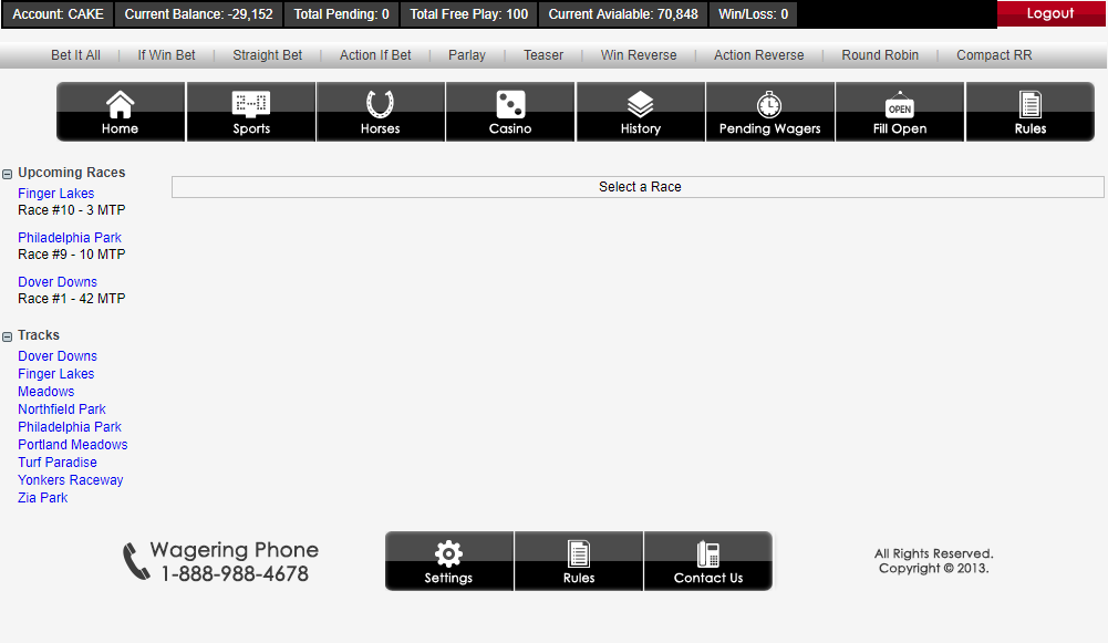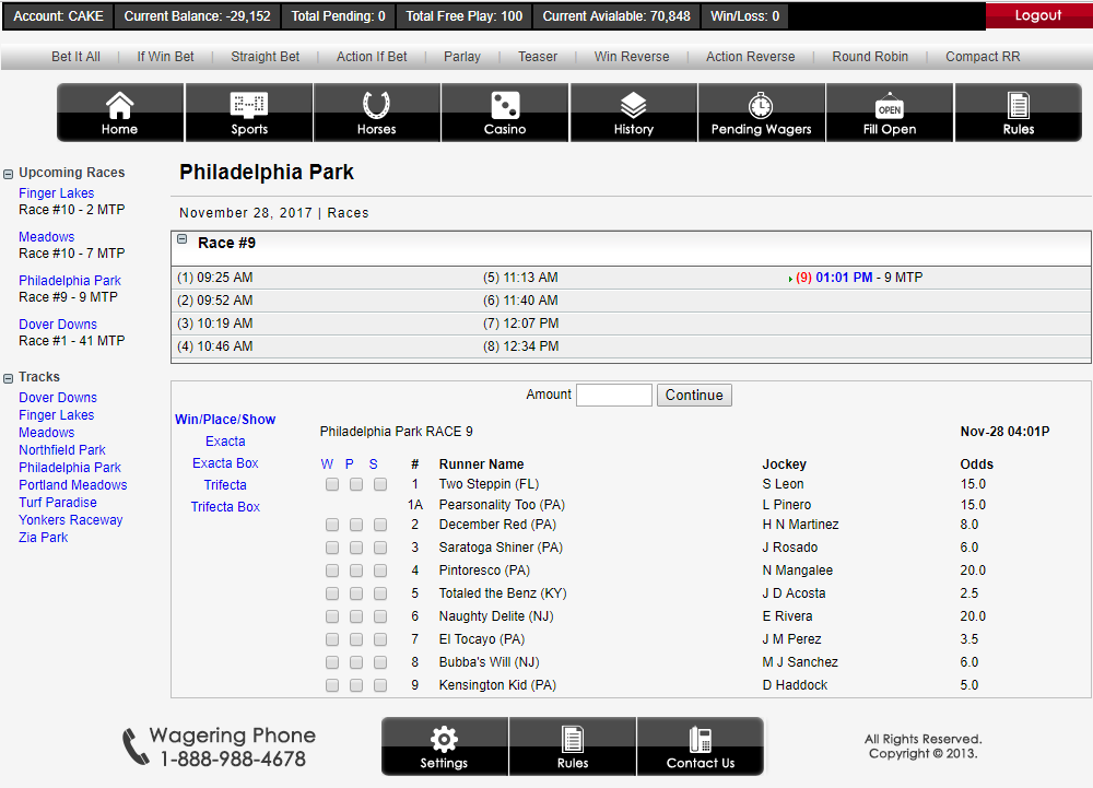 PJBETS.net Racebook offers full track odds you can win up to $3000 max per race.